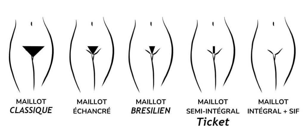 Toutes les formes peuvent être demandées, depuis l’épilation classique (uniquement les poils situés sur la cuisse de l’autre côté du pli inguinal) jusqu’à l’épilation intégrale.