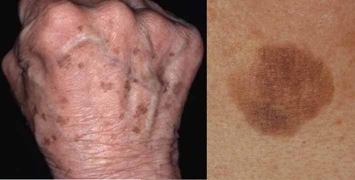 Le lentigo sénile, est une « lentille cutanée » qui apparait avec l’âge.